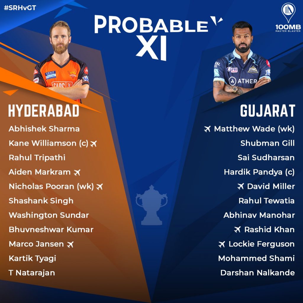 Predicted Playing XI of Sunrisers Hyderabad vs Gujarat Titans