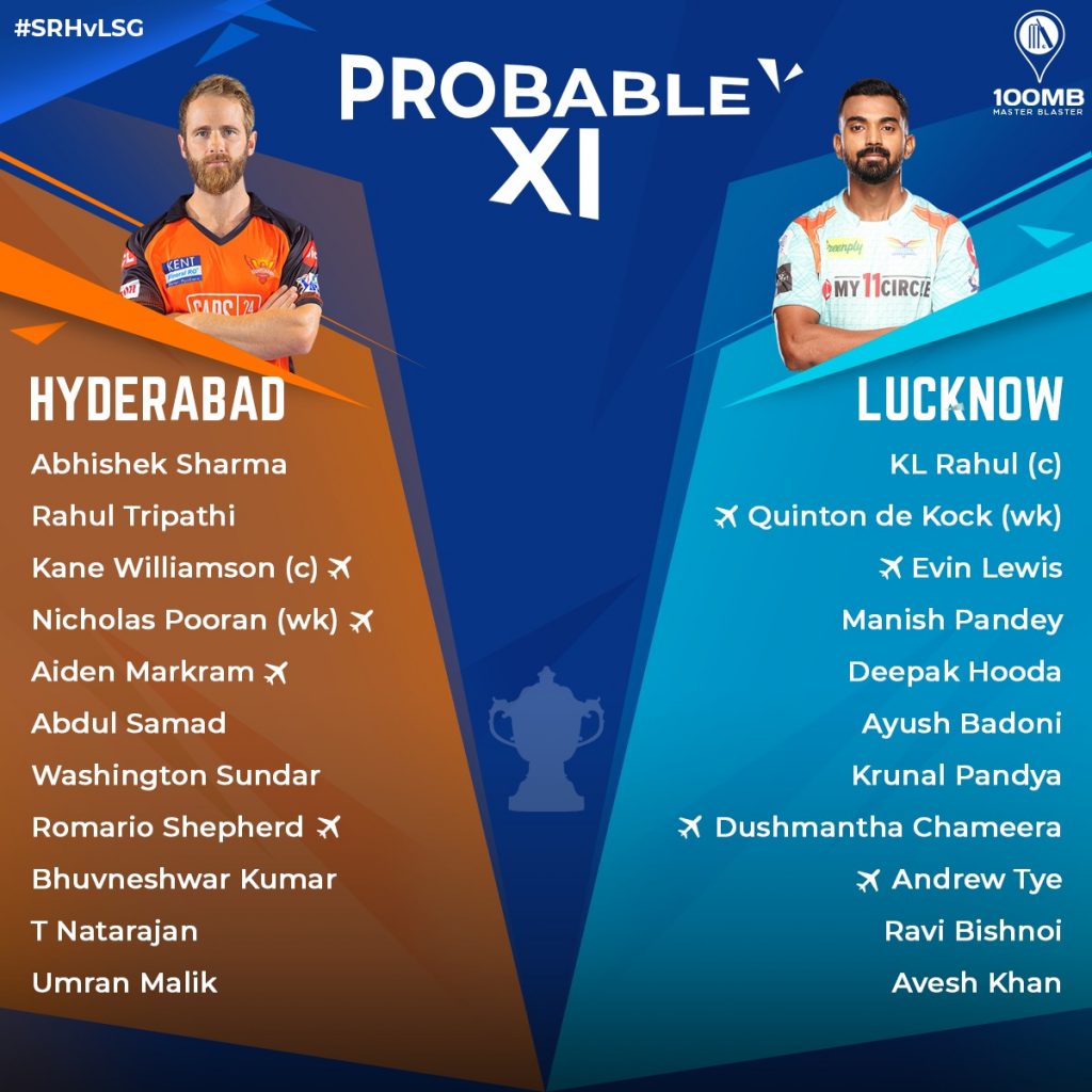 Predicted Playing XI for Sunrisers Hyderabad vs Lucknow Super Giants