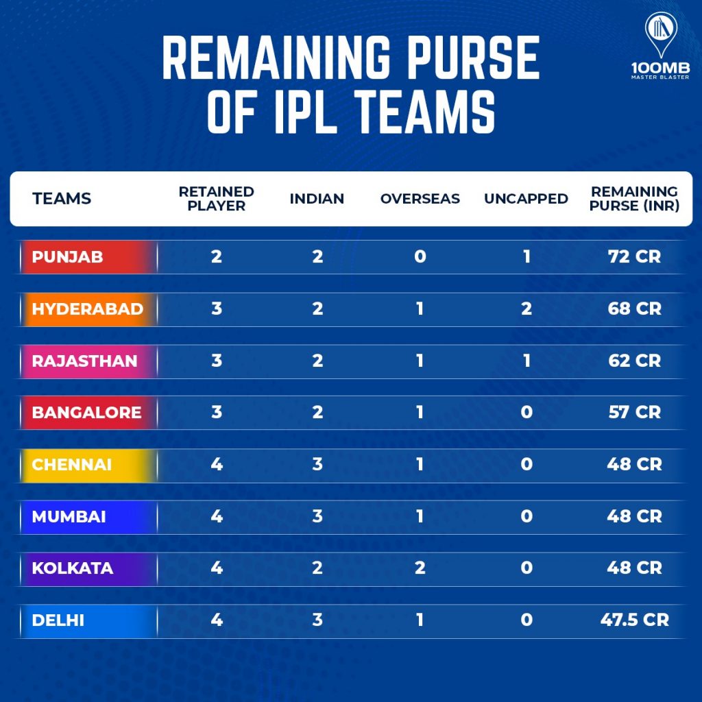 Although none of the sides retained just a single player, INR 14 crore would have been given to the privileged cricketer in that case. With the retention list out, teams are left with different purse amounts. Hence, they have to make their auction strategies accordingly. A few players also took pay cuts despite they were getting more money according to their retention slab amount.