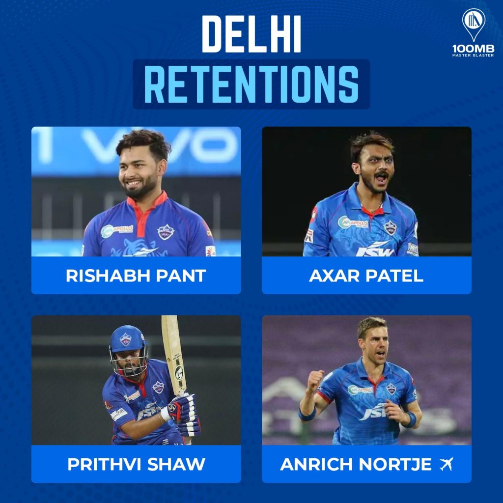 Rishabh Pant, Axar Patel, Prithvi Shaw, Anrich Nortje (overseas).