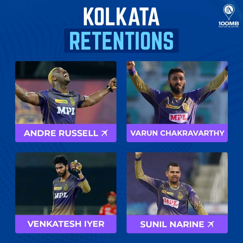 Andre Russell (overseas), Varun Chakravarthy, Venkatesh Iyer, Sunil Narine (overseas)