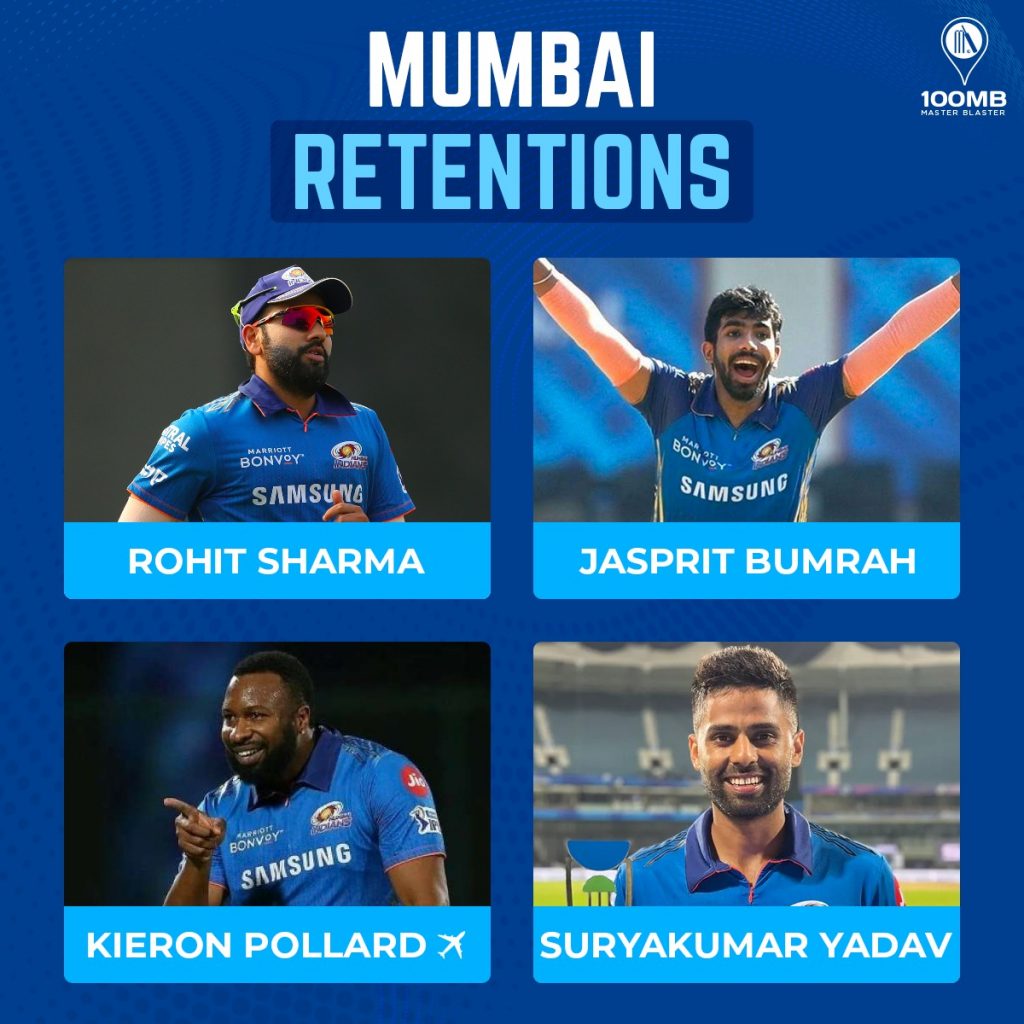 Rohit Sharma, Jasprit Bumrah, Kieron Pollard (overseas), Suryakumar Yadav.