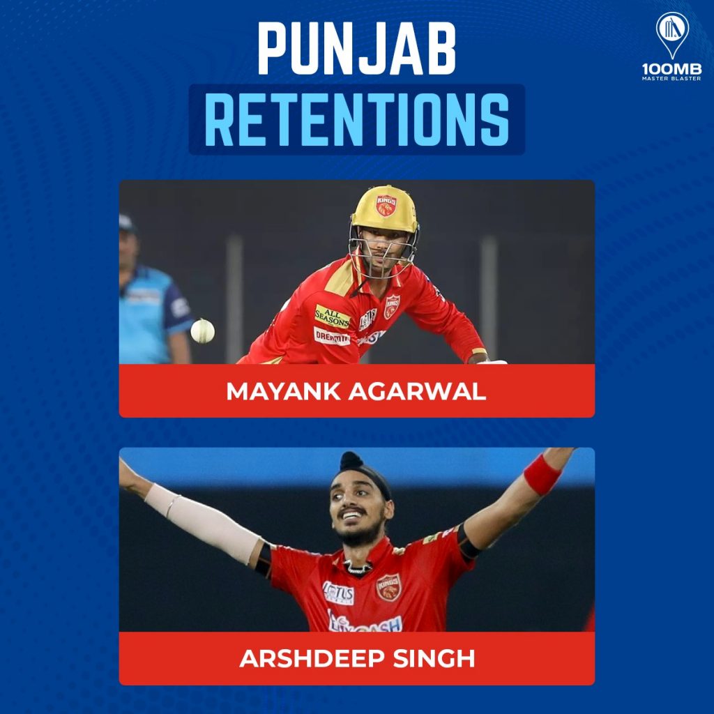 Punjab Kings – 2 retentions (Purse remaining – 72 crores)
