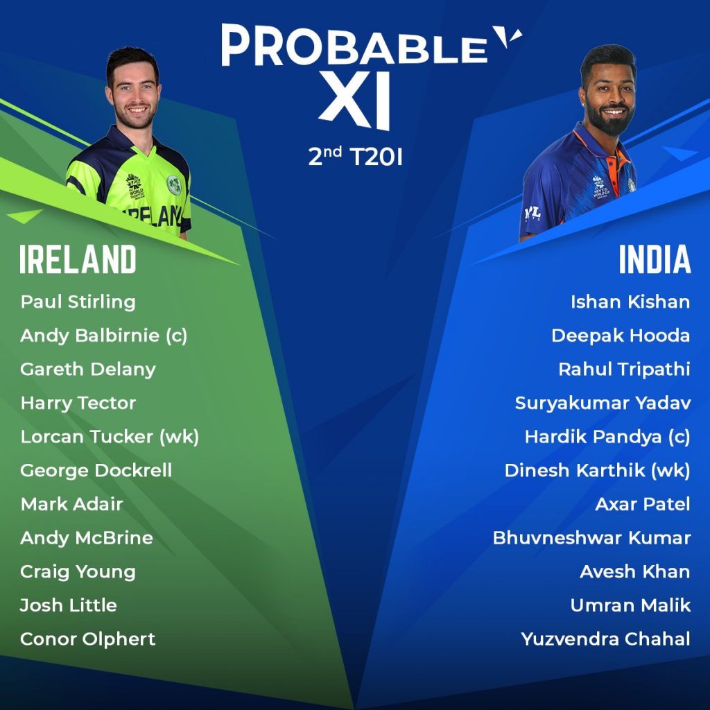 Ireland would most probably not be looking to make any chopping and changes in their playing XI and would rather prefer sticking to the same XI who gave a tough fight to a strong Indian team in the first game to a certain extent. They would now be hoping to showcase an improved performance in order to pull off a huge upset over the Men in Blue.
