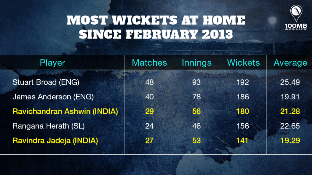 Left-arm spinner Ravindra Jadeja has been a great support for Ashwin in these conditions. Playing dual roles of a wicket-taker and a run-stopping bowler, Jadeja has excelled beyond expectations. His frugal economy of 2.20 at home since 2013 is unmatched amongst his peers. His impact helped him secure a place ahead of Ashwin in the recent West Indies Test series.