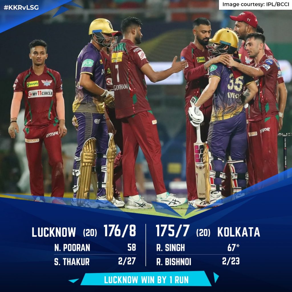 In came Rinku Singh, who yet again displayed his lethal hitting prowess and clobbered a few maximums to get the match down to the wire. With 21 required off the last over, Rinku got the boundaries and maximums but failed to get KKR to the finish line, thereby losing the thrilling affair by mere one run. With this, Lucknow cemented their berth in the Eliminator of the playoffs.