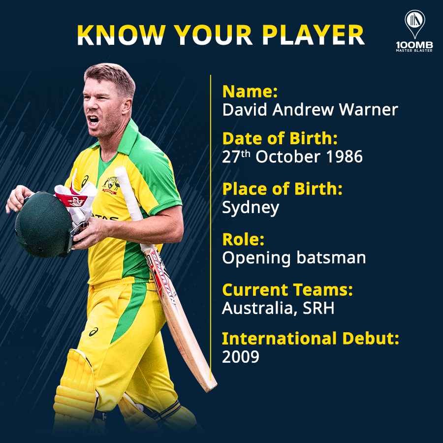 Cricketing milestones, rise through the ranks, trials and tribulations and their glamorous lifestyles – we cover it all in ‘Know Your Player’, a brand-new section aimed at keeping you updated with everything you need to know! In this edition, we take a look at Australia’s Mr. Destructive, David Warner. Keep watching this space for a new superstar every time!