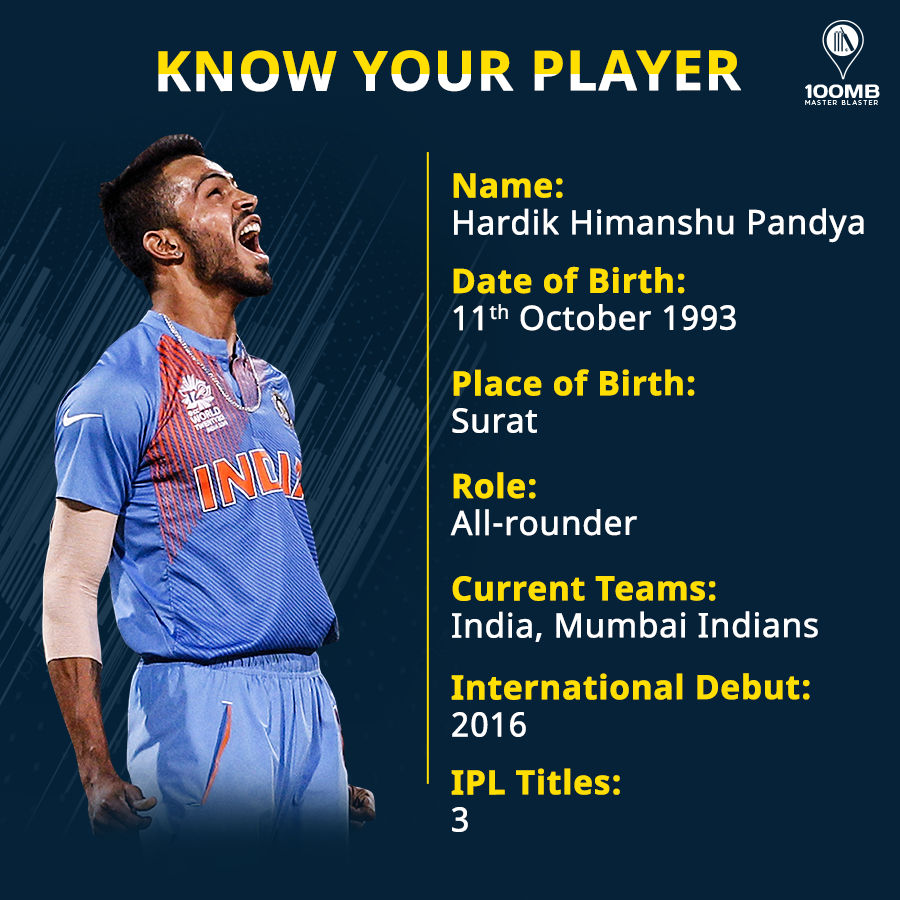 Cricketing milestones, rise through the ranks, trials and tribulations and their glamorous lifestyles – we cover it all in ‘Know Your Player’. In our latest edition, we take a look at the power-packed Hardik Pandya!