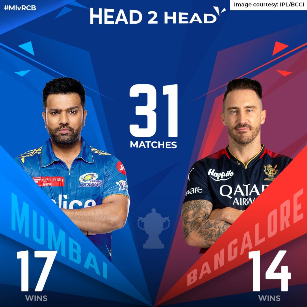 Mumbai’s last encounter was against CSK, where they lost the game at the MA Chidambaram Stadium in Chennai, facing their first defeat at the venue in 13 years. RCB, on the other hand, were handed a defeat at the hands of the David Warner-led Delhi Capitals at the Arun Jaitley Stadium. While Mumbai needs to strengthen the top order, RCB needs to work on their bowling and middle order.