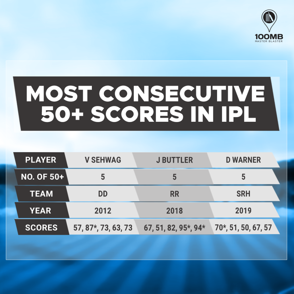 No Indian has managed to replicate Sehwag’s feat even eight years after the record. Sehwag was also the only player with five consecutive fifties in the IPL during the first decade of the league. However, his record was levelled in 2018 by Jos Buttler while playing for the Rajasthan Royals. After a couple of failures with the bat in the middle-order, Buttler was promoted to open the batting during a rain-curtailed match.