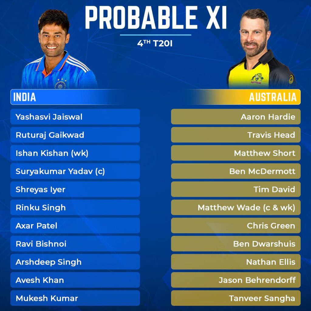 IND vs AUS: 4th T20I Preview – India aim to tone down hungry Kangaroos