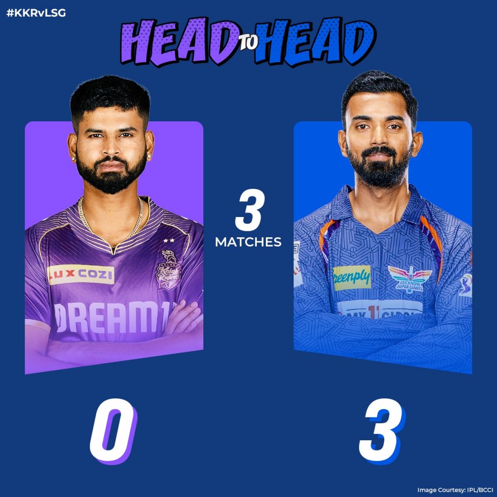 Lucknow have a clean slate in the head-to-head scoreline against the Knight Riders as they have won all three matches against the Men in Purple and Gold so far.