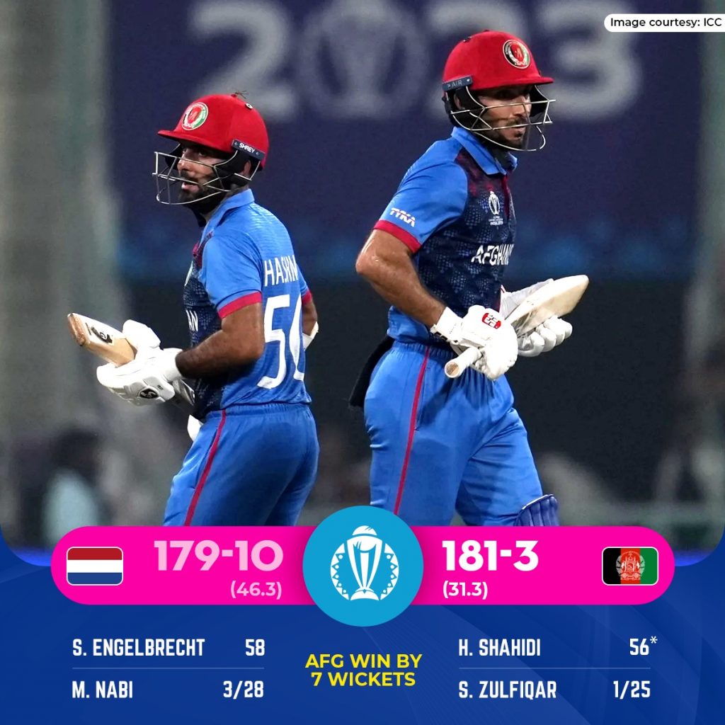 The 34th match of the ongoing ODI World Cup was played at the Bharat Ratna Shri Atal Bihari Vajpayee Ekana Cricket Stadium in Lucknow where Afghanistan and Netherlands faced off each other.