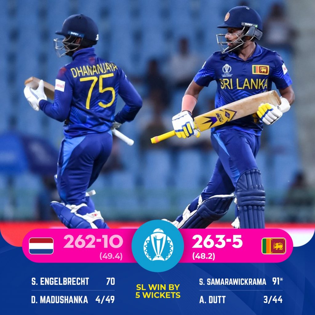 Asalanka got out while attempting a big shot, but Sadeera remained not out till the end and played a brilliant innings of 91 runs. Sri Lanka won the game by five wickets, earning their first points on the points table.