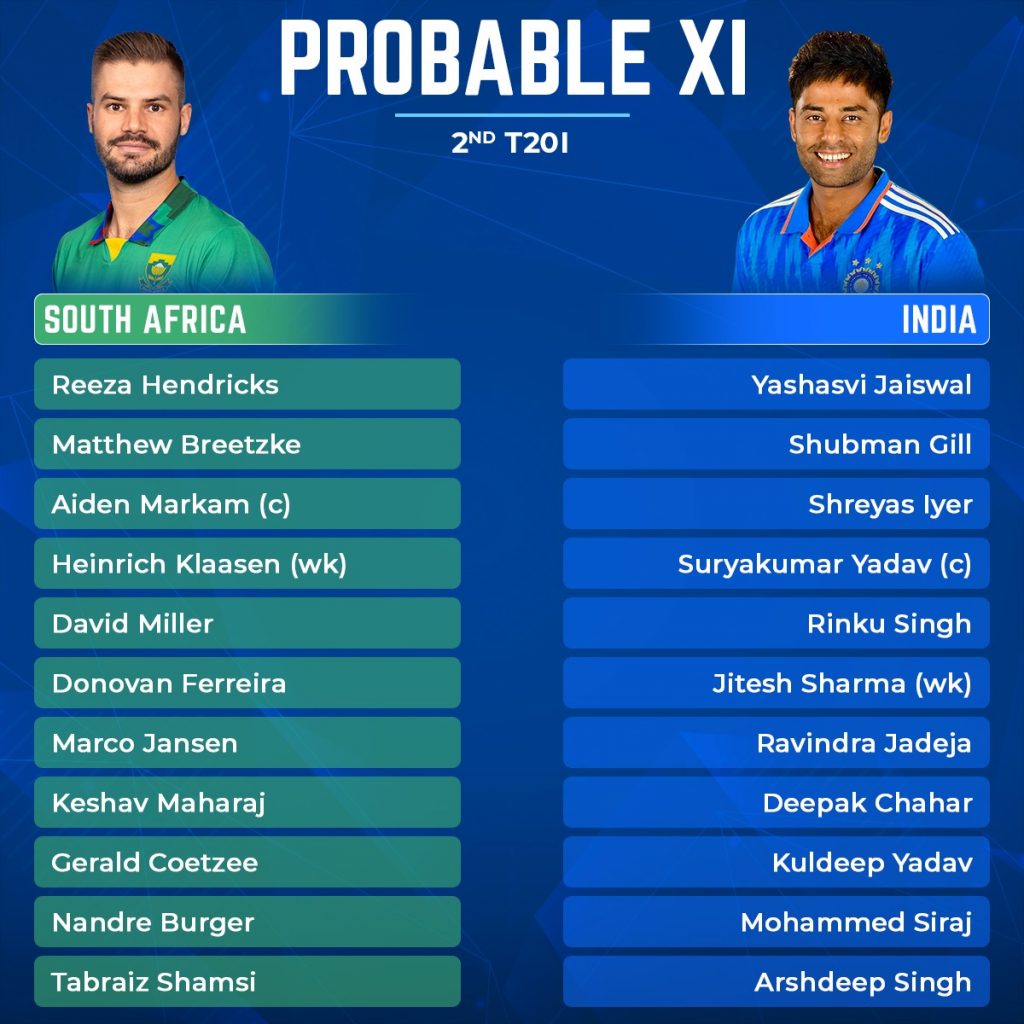 On the other hand, South Africa last played a T20I series against Australia at home in August-September 2023. They lost the series by 3-0. Hence, the Aiden Markram-led side will look to bounce back strong against India who have an upper hand over them in T20Is on their soil.