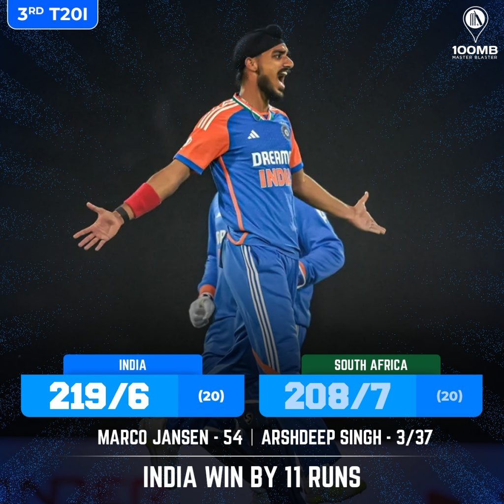 India defeated South Africa by 11 runs in the third T20I to take a 2-1 lead in the ongoing four-match series. Batting first, the visitors suffered an early blow, losing the wicket of Sanju Samson for a duck. Abhishek Sharma, struggling to find runs in international cricket, finally showed signs of his class, scoring a half-century off just 25 deliveries. Alongside Tilak Varma, who was promoted to number three, Abhishek stitched a partnership of 107 runs, that set the momentum for India at the SuperSport Park, Centurion.