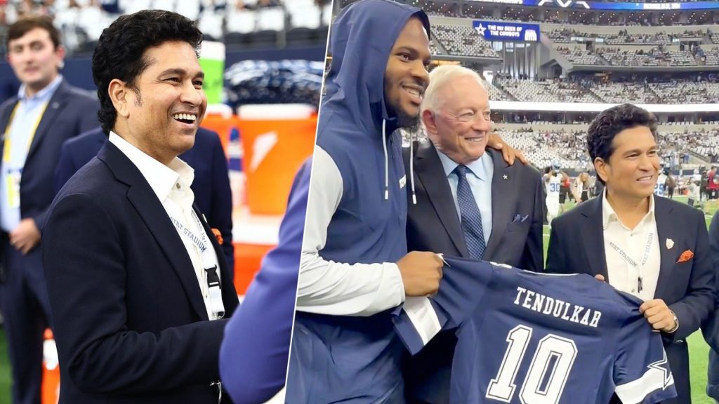 Sachin Tendulkar, one of cricket’s greatest icons, was honored by the Dallas Cowboys ahead of their NFL game against the Detroit Lions on October 14, 2024. As part of a unique cross-sport tribute, Tendulkar received a personalized No. 10 Cowboys jersey from team owner Jerry Jones. This moment brought together two global sports, celebrating Tendulkar’s immense contributions to cricket while also highlighting the growing interaction between cricket and American football. The jersey presentation was a gesture of appreciation for Tendulkar’s efforts to popularize cricket in the United States through his involvement in the National Cricket League.