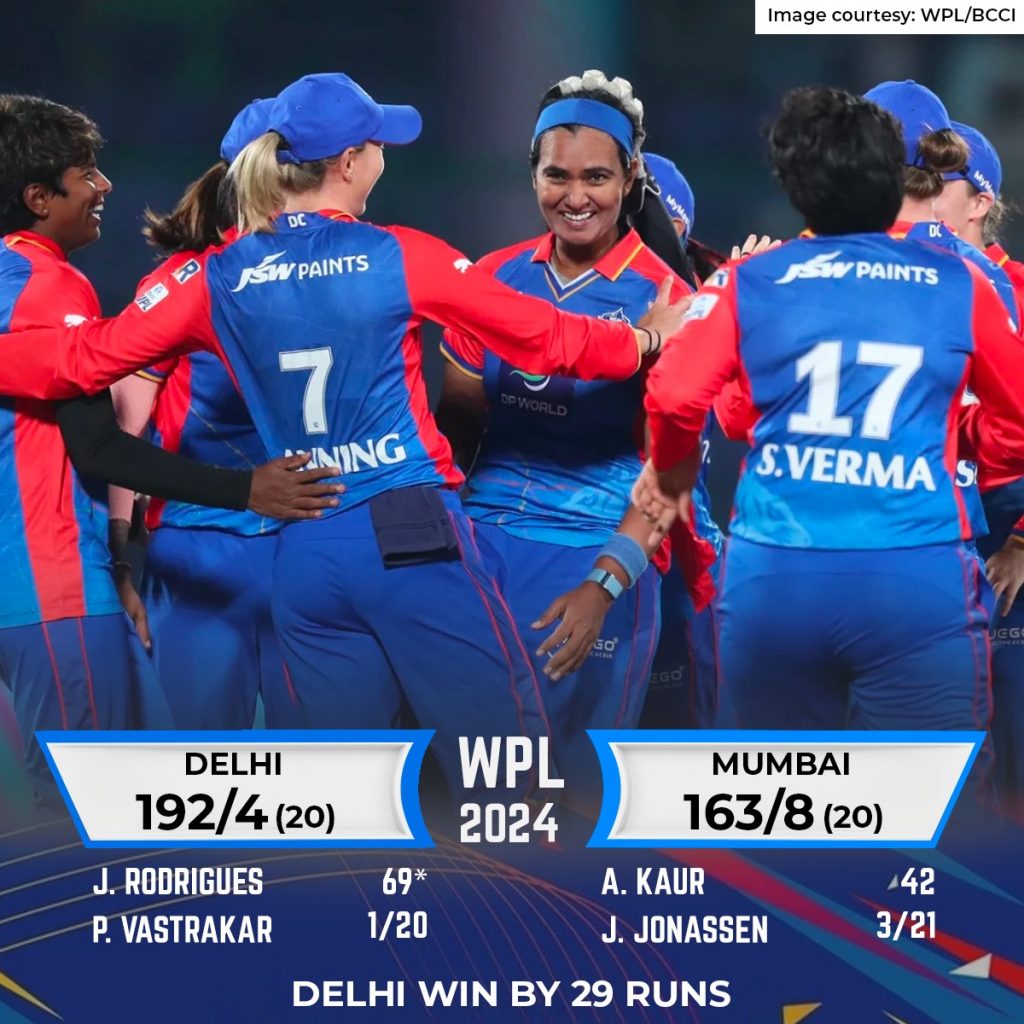 The 12th 2024 Women’s Premier League match was played at Arun Jaitley Stadium between Delhi Capitals Women and the Mumbai Indians Women and the hosts displayed a dominating performance, defeating Mumbai by 29 runs to consolidate their top position in the points table.