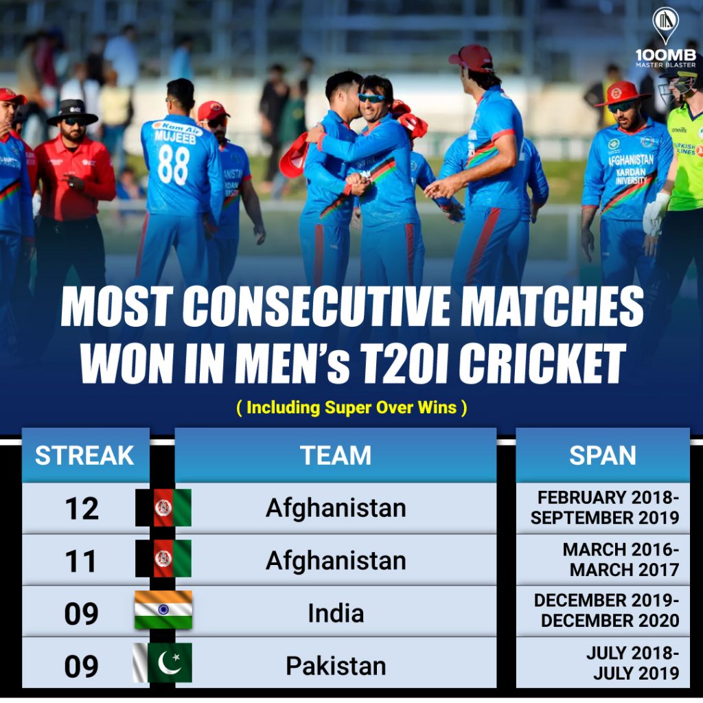 In this process, Afghanistan broke their own record which they created with 11 successive wins between 2016 and 2017. The two streaks of Afghanistan were boosted by their success in the Asian continent as they won 21 T20I matches they played in a row in Asia between 2016 and 2019. India, who won nine consecutive T20Is this year with the help of two Super Over wins, became just the 3rd team to win as many as nine T20Is in succession in Men’s cricket.