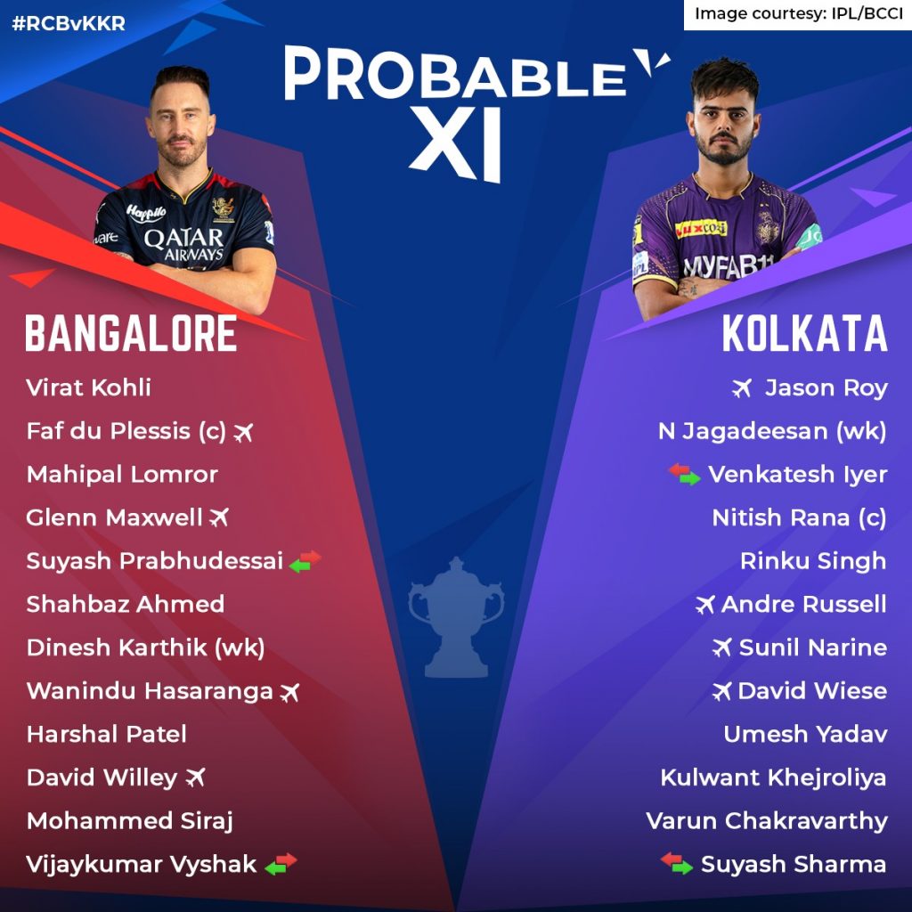 Here’s the probable playing XI for Royal Challengers Bangalore vs Kolkata Knight Riders: