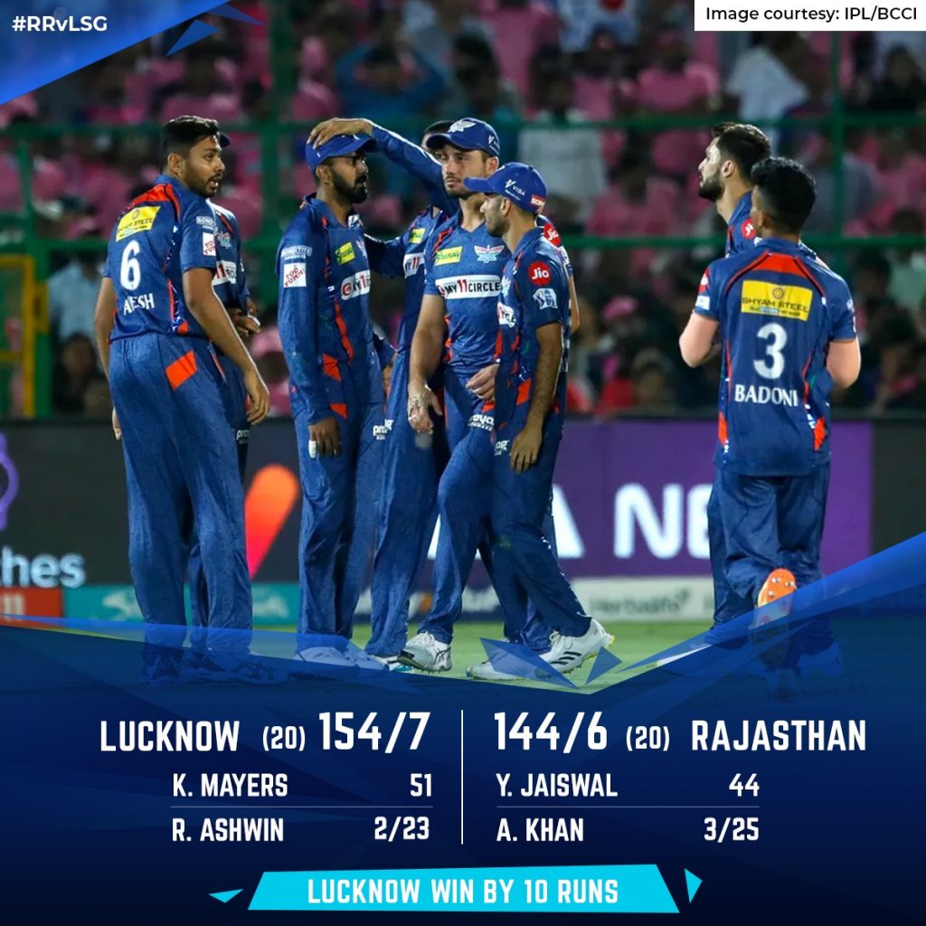 Lucknow Super Giants pulled off an impressive 10-run win over table-toppers Rajasthan Royals in the 26th Indian Premier League 2023 match on April 19. Ravichandran Ashwin shone with two wickets as Lucknow managed to score just 154/7 while batting first. Then Jos Buttler and Yashasvi Jaiswal gave Rajasthan a solid start but Avesh Khan and Marcus Stoinis bowled match-winning spells at the death to guide Lucknow to a deserving win.