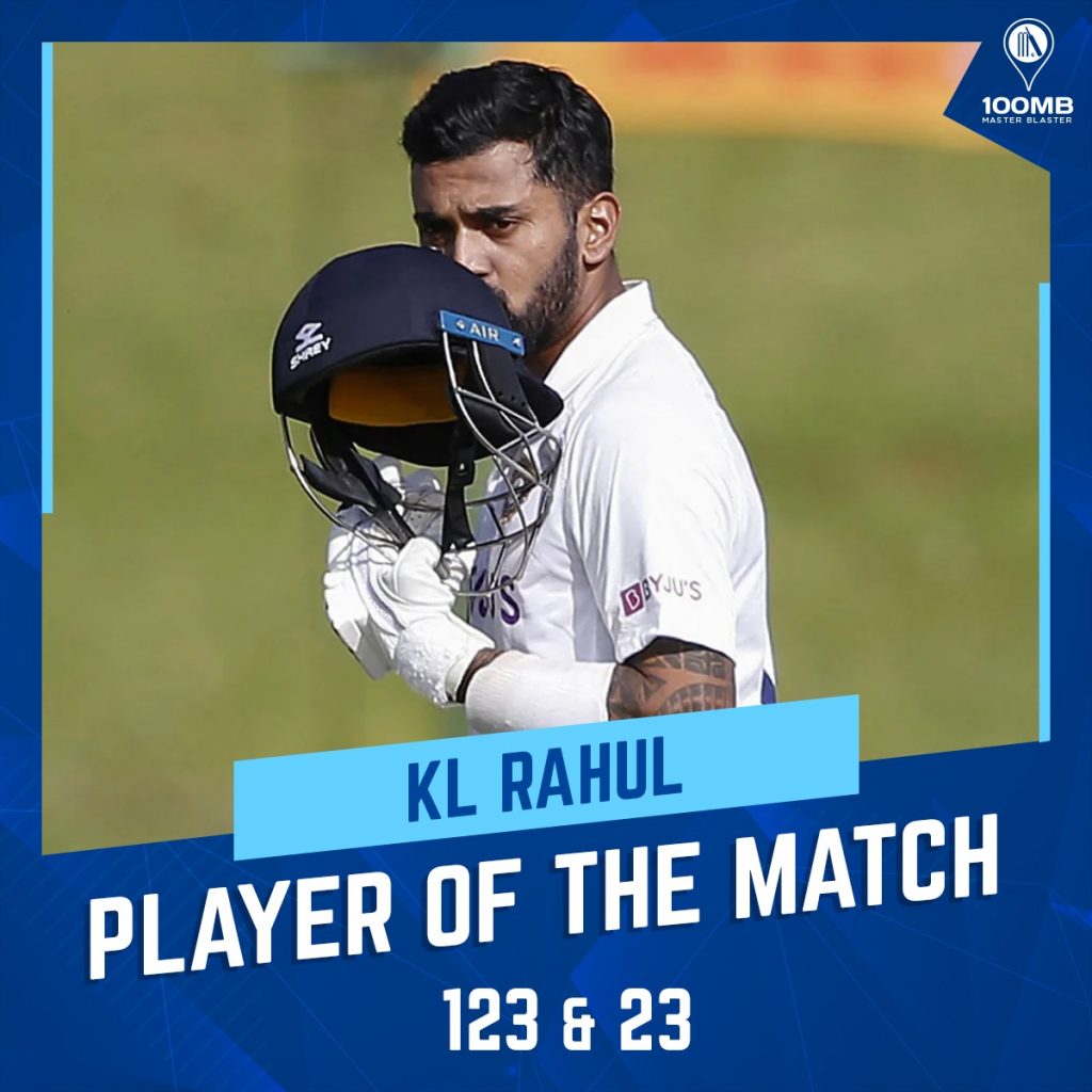 KL Rahul was adjudged the Player of the Match for his spectacular century that had laid the foundation of the team’s win. He blunted out the new ball, notching up a masterclass of Test batting in challenging batting conditions while being well-assisted by partner Mayank Agarwal’s 60. Rahul could not get going in the second innings when he departed for 23, but his first-innings show was enough for India to capitalise upon.