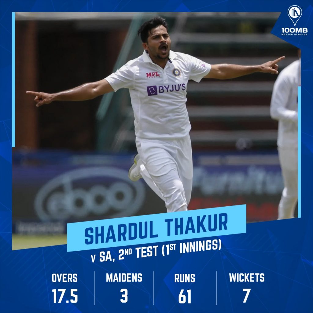 Continuing his happy knack of taking wickets, Shardul Thakur delivered yet another stellar spell. He breathed fire with the red cherry and made Proteas batters dance to his tunes. It must be noted that Thakur didn’t get to operate with the new ball. This makes his seven-fer even more special. He returned with the magical figures of 7/61 which helped India to restrict South Africa’s lead to only 27.