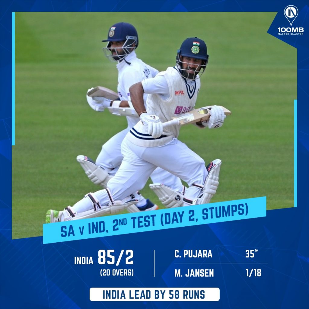 The ongoing second Test match between South Africa and India is perfectly hanging in balance at stumps on Day 2. India were 85/2 at the end of the day’s play with veterans Cheteshwar Pujara and Ajinkya Rahane being the two batters in the middle. Having already earned a 58-run lead, the visitors would be eyeing to post a stiff target on the board to knock South Africa out of the contest.