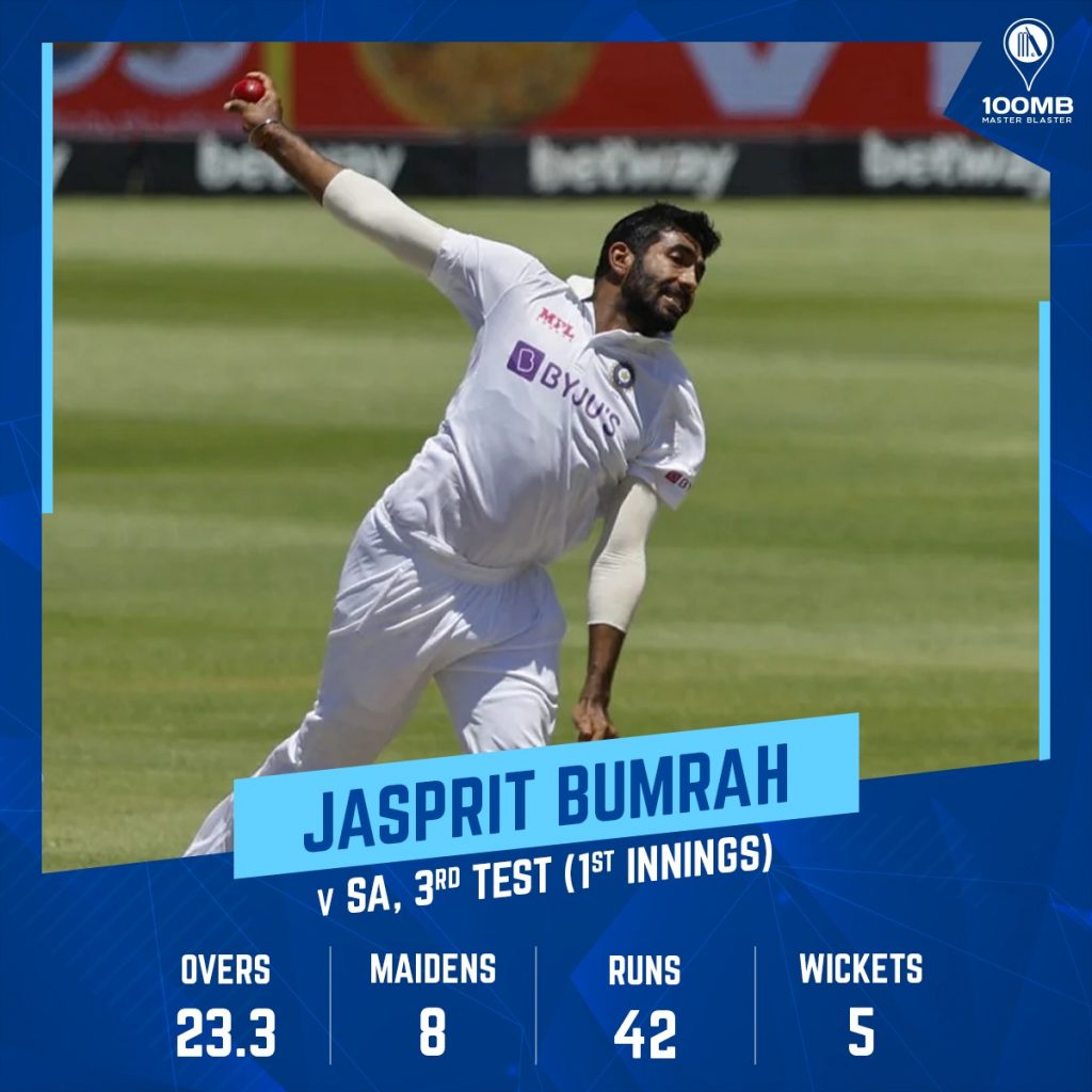 5/42 – Bumrah recorded his fourth-best bowling figures in a Test innings. His top three spells are 6/27 against West Indies in 2019, 6/33 against Australia in 2018, and 5/7 against West Indies in 2019.