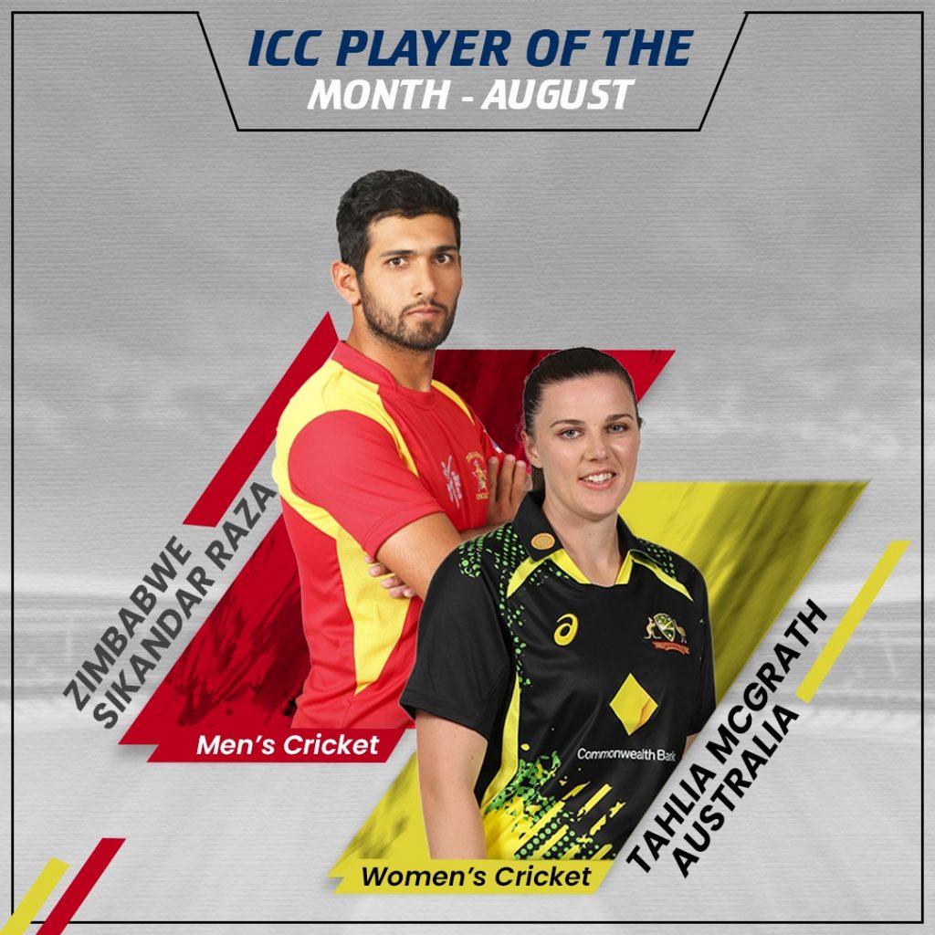 The International Cricket Council (ICC) today announced the winners of the ICC Player of the Month awards for August 2022 which sees Zimbabwe’s Sikandar Raza and Australia’s Tahlia McGrath honoured following their outstanding international performances during August.