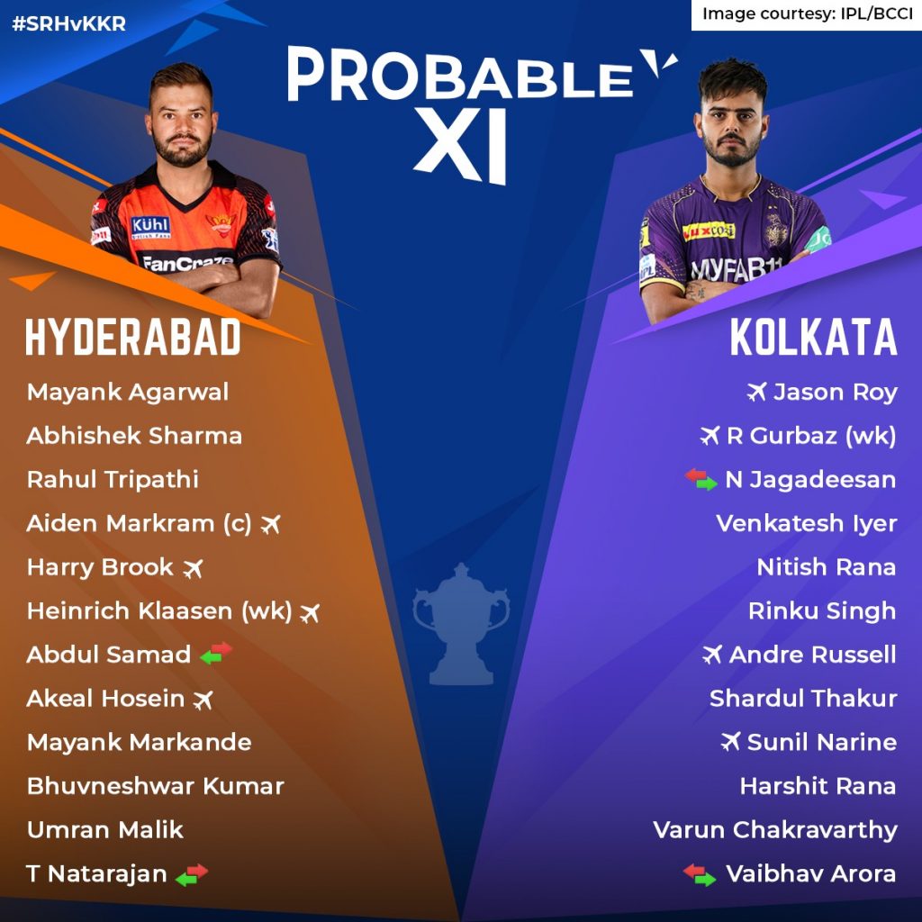 Here’s the probable playing XI for Sunrisers Hyderabad vs Kolkata Knight Riders: