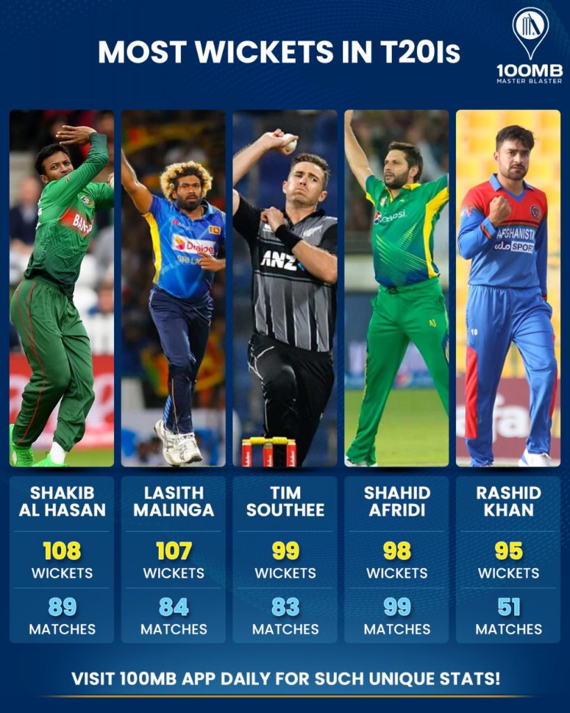 108 – Shakib Al Hasan (108 wickets) became the highest wicket-taker in T20Is. He went past Lasith Malinga’s tally of 107 wickets.