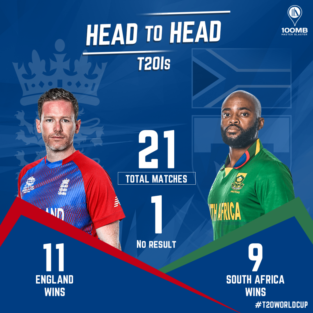 The two teams have met five times in the T20 World Cups, with England winning two and South Africa winning three. In the 2016 edition, England successfully made the highest run chase ever in World Cups, chasing down 230 in Mumbai.