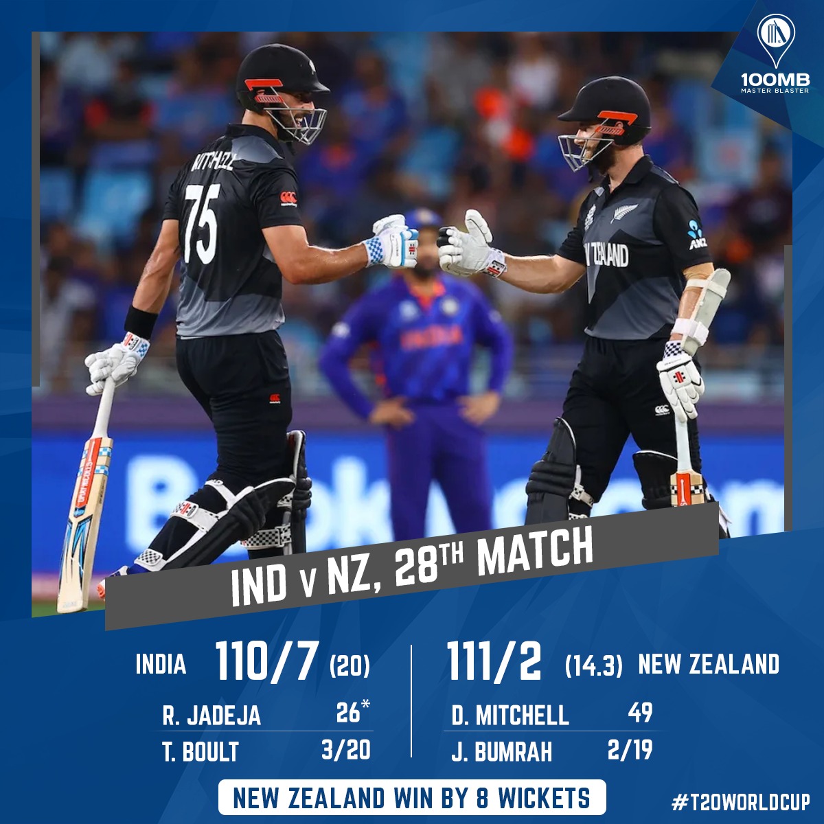 If the batting wasn’t disappointing enough, India’s bowling went a step further. Jasprit Bumrah was the only one among the wickets, and they were the only two wickets to fall. Kane Williamson played the perfect anchoring role (33 off 31), ensuring his team crossed the finish line without any hiccup.
