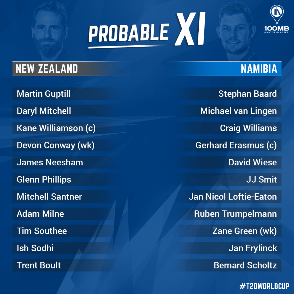 Namibia: The African side has punched above their weight right through this tournament. There are no injury concerns in their team, and they might field the same XI which they fielded against Pakistan. They have the right combination in store, which could potentially help them in upsetting the New Zealand team.