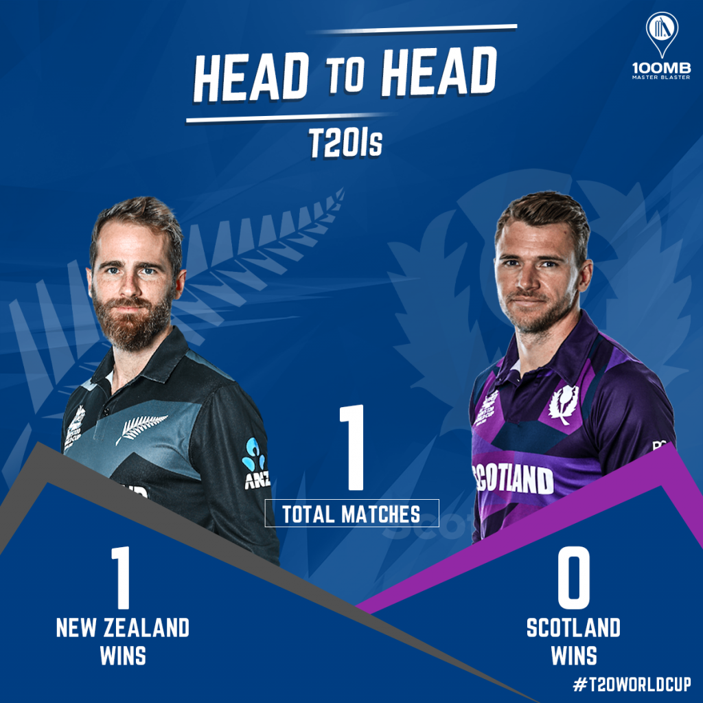 The only T20I match between these two teams was played way back at the 2009 World Cup in England. New Zealand won that rain-reduced match. Scotland made 89 in seven overs, which was chased by NZ in six overs.