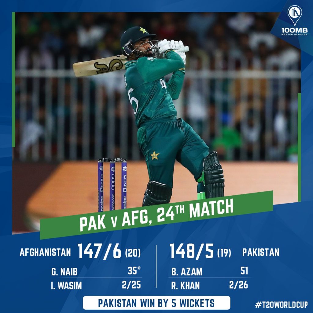 Afghanistan kept things tight through, taking it to the death overs. However, it was Asif Ali who finished the job in style for Pakistan once again with his 7-ball 25, knocking off the chase with an over to spare. Rashid Khan picked up two wickets, while Nabi, Mujeeb Ur Rahman and Naveen-ul-Haq picked one wicket each.