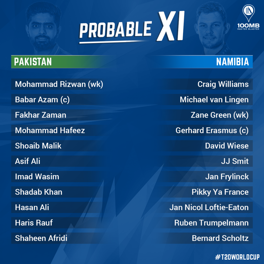 Namibia: The Namibian side which played in the last game wasn’t ideal for a T20 match by any stretch of the imagination. They are slightly dependent on individual performances and they would want their star and key players to step up. The challenge will be tough against Pakistan, but their best bet is the XI which was fielded against Afghanistan. They also have no injury concerns.