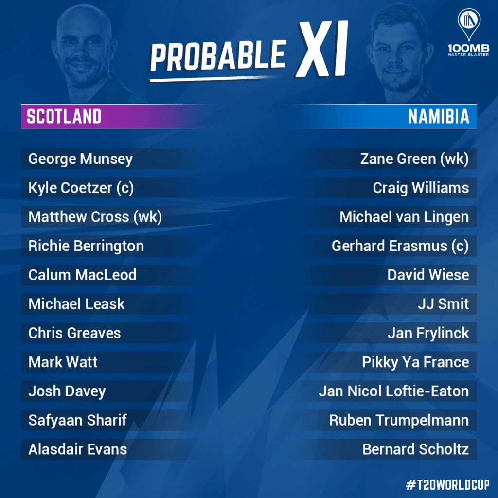 Scotland: The Scottish team clearly has an issue while playing quality spin bowling, but they might not be too worried if the Namibian side will present them. Having said that, they also have no injury concerns within their side which is a good sign for them. They will play the same XI which didn’t do much against Afghanistan.