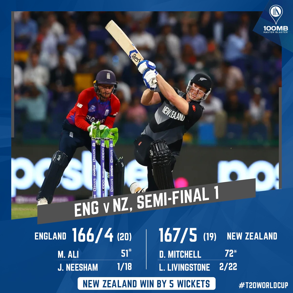 England bow out of the tournament with 4 wins and 2 losses, while New Zealand have made it to their maiden T20 World Cup final.