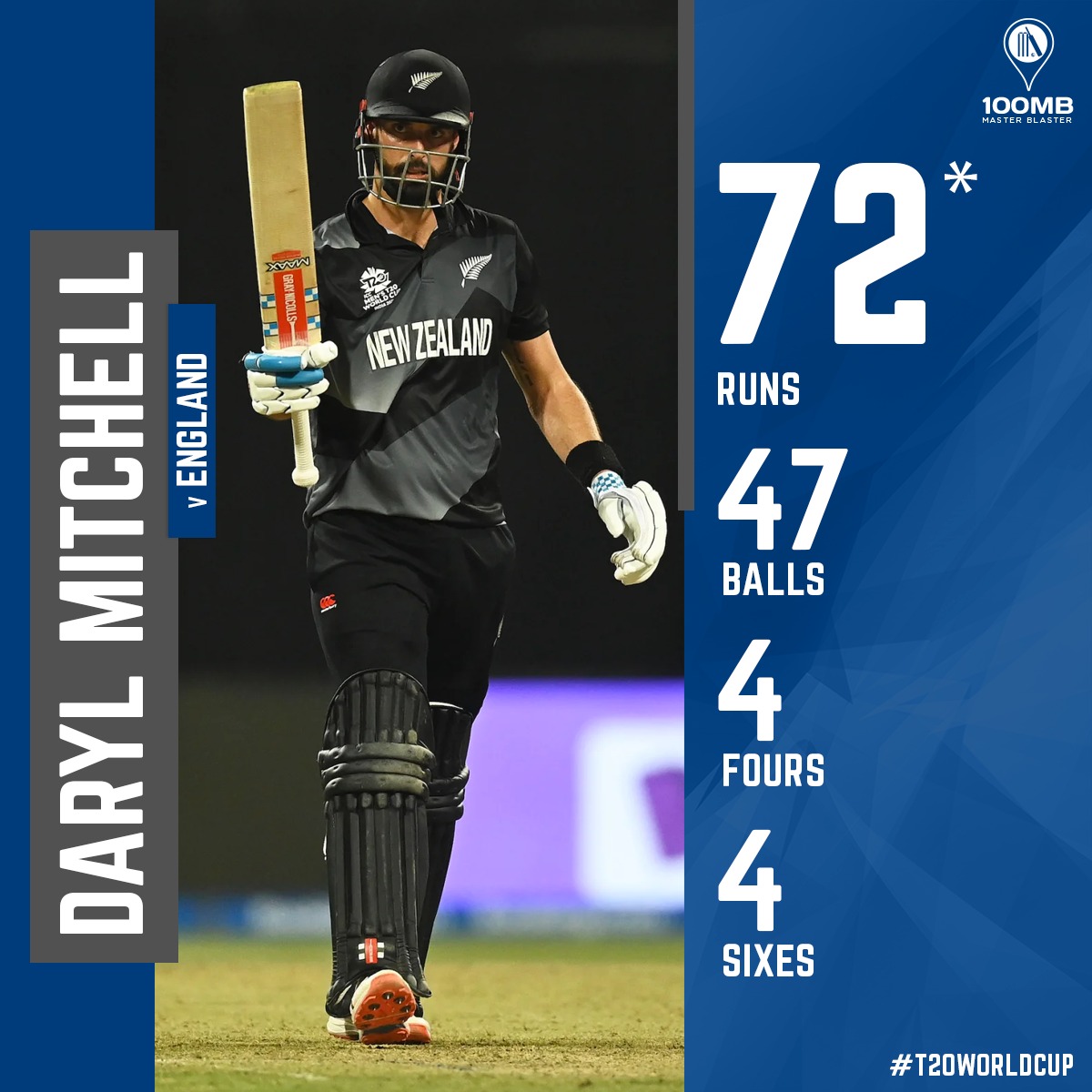 - Daryl Mitchell became the first player to score 50+ for New Zealand in a T20 World Cup knockout match
