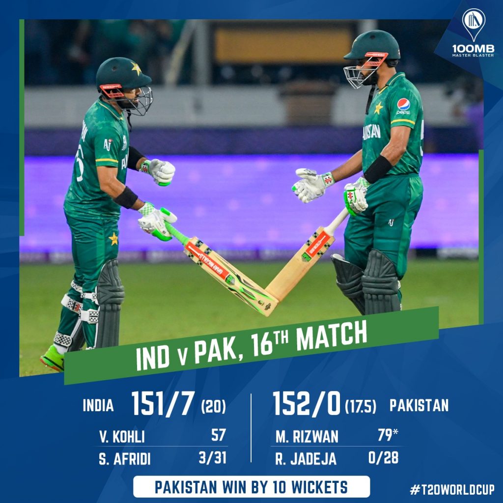 Haris Rauf and Shadab Khan picked up one wicket each while Hasan Ali got a couple of wickets as well. With the bat, Pakistan was just as clinical as they could have been. India didn’t manage to get wickets at all, which just played into the hands of Pakistan. It was a brilliant batting display by Babar Azam who made 68 runs from 52 balls while Mohammad Rizwan was unbeaten with him for 79 runs from 55 balls. They managed to get the chase done with 13 balls to spare.