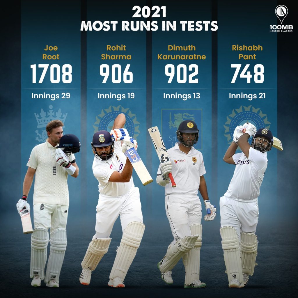 Rohit Sharma occupies the second spot in the list. The ‘Hitman’ scored 906 runs in 2021 and scored his runs at an average of 47.68. Sharma also plundered two centuries and four fifties in the year. Sharma’s standout performance was the 161 that he blasted against the England side at Chennai, paving the way for India to pummel their opponents by 317 runs.