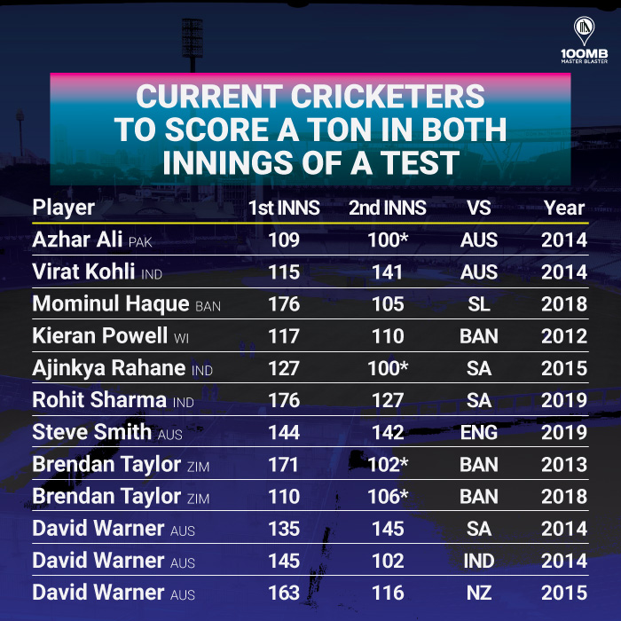 Twin tons: Active cricketers who have scored centuries in both Test innings