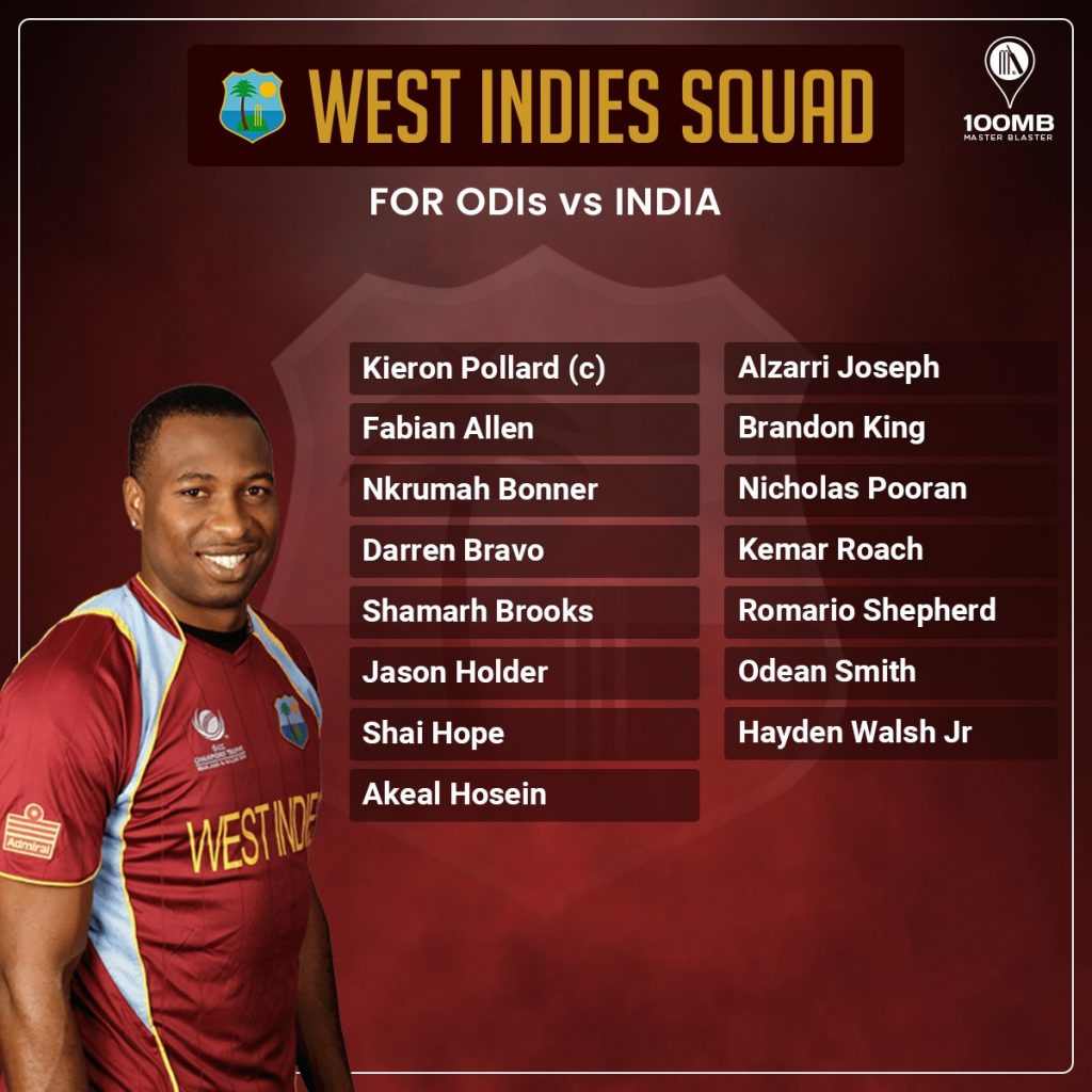 And, the West Indies have announced the ODI squad for the series against India. Veteran right arm pacer Kemar Roach as well as Nkrumah Bonner have made a return to the squad. Brandon King has also found a place in the squad as well.