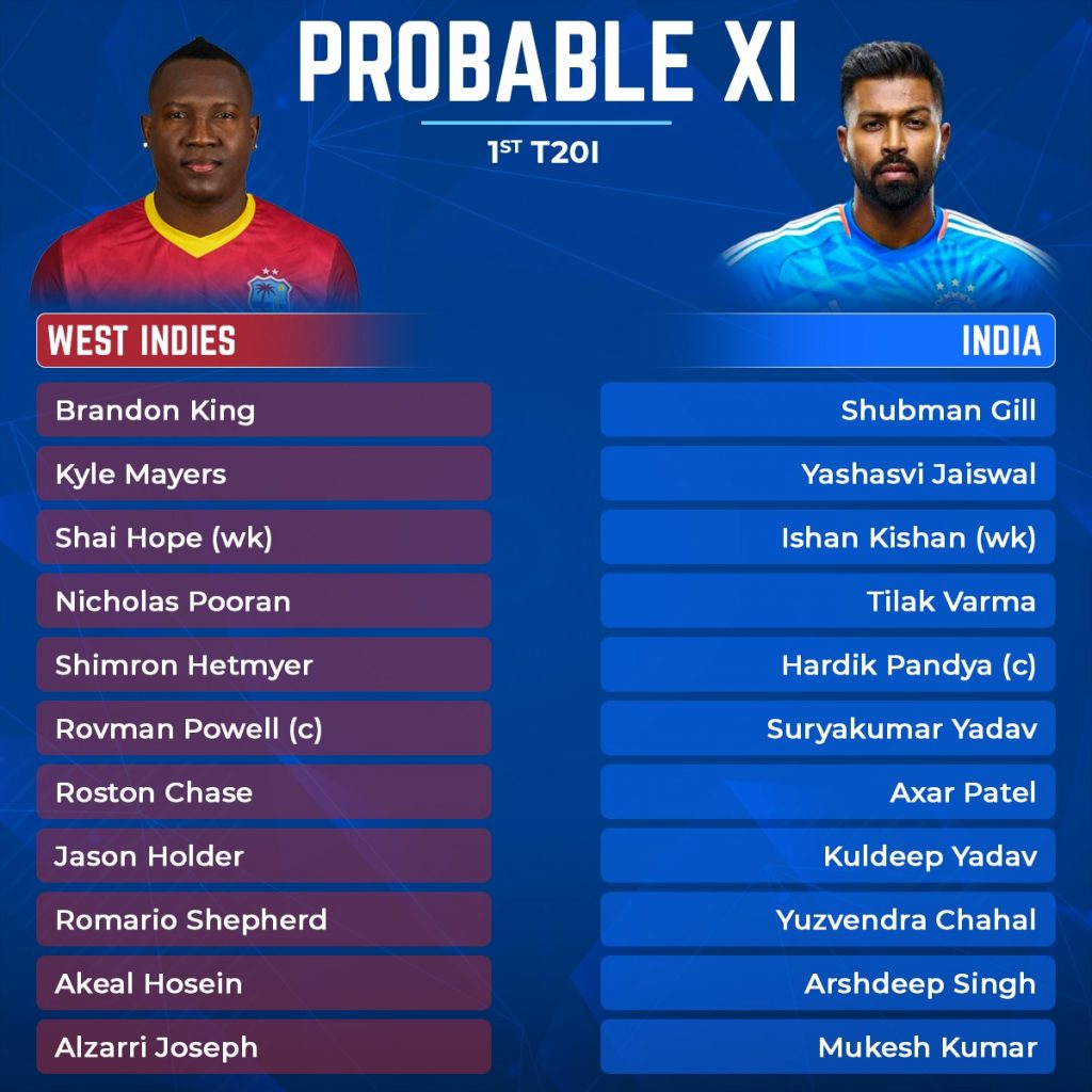 Speaking about their head-to-head records, the two teams have contested in 25 T20Is thus far. Whereas, India have a massive upper hand with 17 wins to Windies’ seven wins and one match with no result. The two sides last contested in a T20I match in 2022 under the leadership of Hardik Pandya wherein team India won by 88 runs.