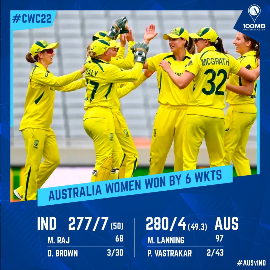 For India, the likes of Yastika Bhatia, Mithali Raj and Harmanpreet Kaur smashed half-centuries as the Women in Blue posted 277/7. Vastrakar then came and played an impressive cameo towards the end, scoring a 28-ball 34. Darcie Brown was the pick of the bowlers for the kangaroos as she scalped out three Indian batters.