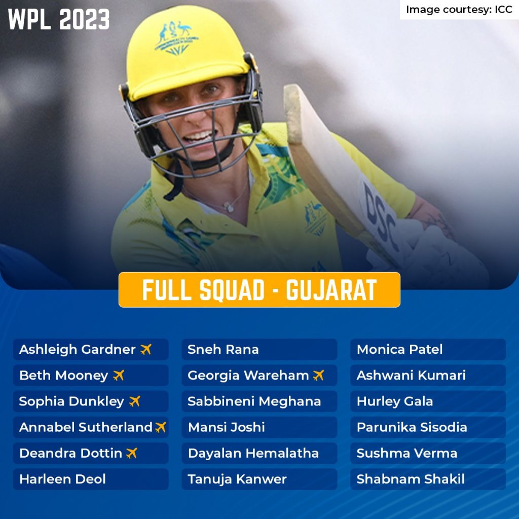 Gujarat Giants: Ashleigh Gardner, Beth Mooney, Sophia Dunkley, Deandra Dottin, Annabel Sutherland, Harleen Deol, Sneh Rana, Sabbineni Meghana, Georgia Wareham, Dayalan Hemalatha, Monica Patel, Tanuja Kanwer, Mansi Joshi, Sushma Verma, Hurley Gala, Ashwani Kumari, Parunika Sisodia, Shabnam Shakil