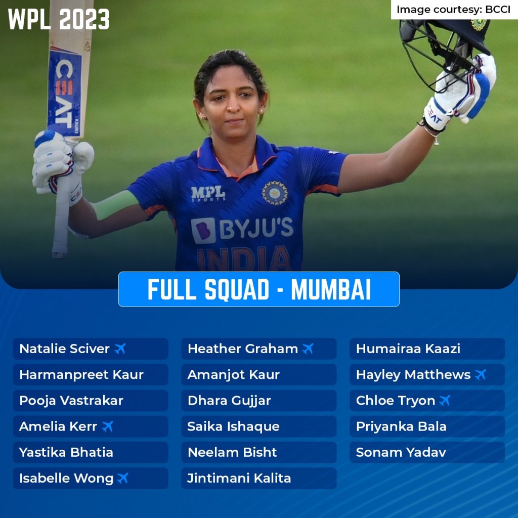 Mumbai Indians: Harmanpreet Kaur, Natalie Sciver-Brunt, Amelia Kerr, Pooja Vastrakar, Yastika Bhatia, Heather Graham, Isabelle Wong, Amanjot Kaur, Dhara Gujjar, Saika Ishaque, Hayley Matthews, Chloe Tryon, Humairaa Kaazi, Priyanka Bala, Sonam Yadav, Jintamani Kalita, Neelam Bisht