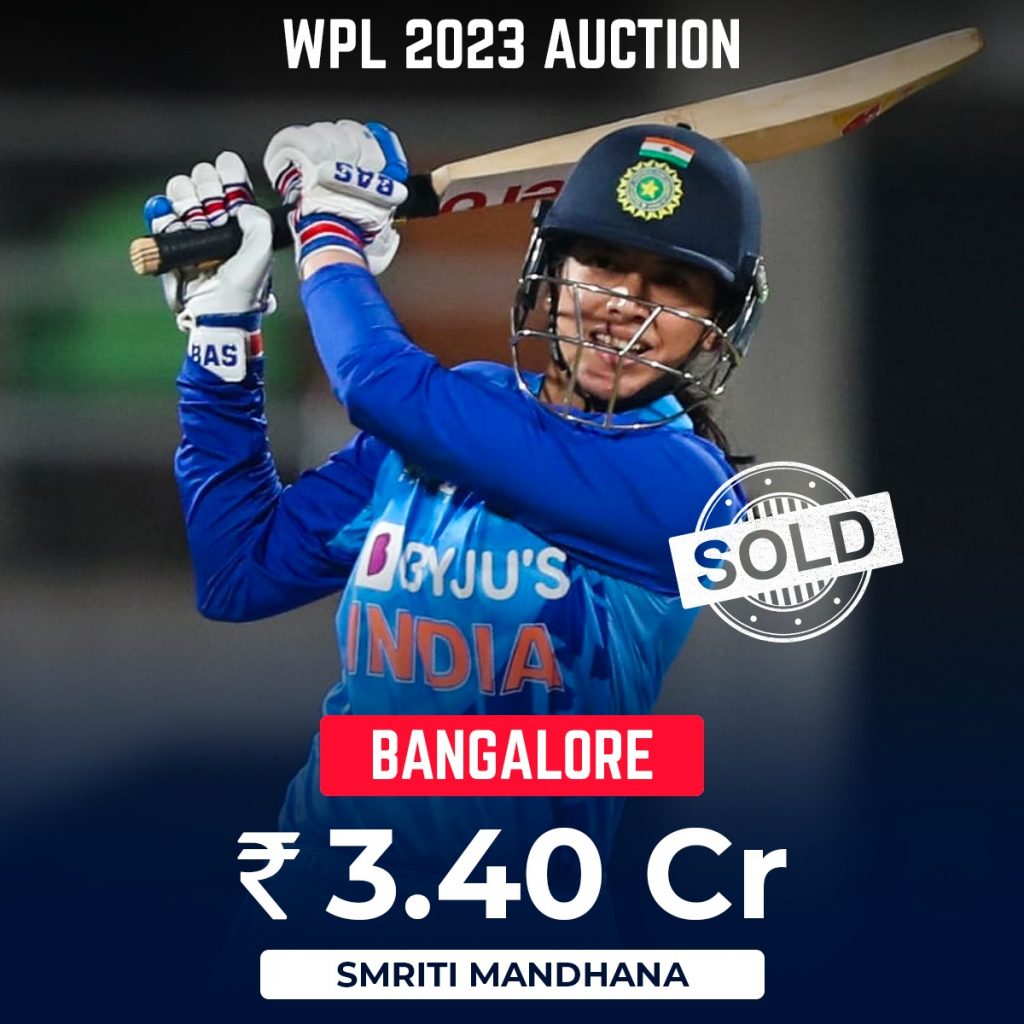 And the first set is complete! Royal Challengers Bangalore bagged Smriti Mandhana, who was the first name out of the bag. Mumbai Indians signed up the current Indian captain Harmanpreet Kaur. Ashleigh Gardner joined Gujarat Giants while Sophie Ecclestone was lapped up by UP Warriorz. RCB then added Ellyse Perry and Sophie Devine to their roster. We take a break now.